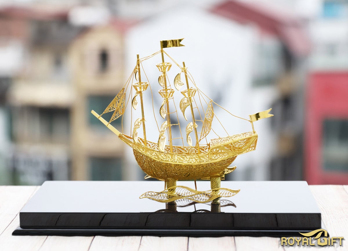 Mô hình thuyền buồm phong thuỷ mạ vàng là một chế tác đầy kỳ công