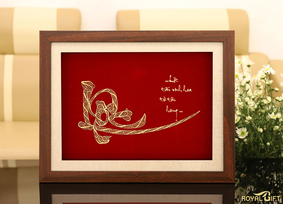 Bạn đang băn khoăn tìm món quà mừng sếp thăng chức vừa thể hiện được ý nghĩa việc chúc mừng sếp lên vị trí mơi vừa mang vẻ đẹp tinh tế, sang trọng cũng như giá trị sử dụng được dài lâu. Vậy thì bức tranh chữ Lộc mạ vàng theo lối thư pháp nghệ thuật sẽ là món quà vừa ý bạn vừa đẹp lòng sếp.