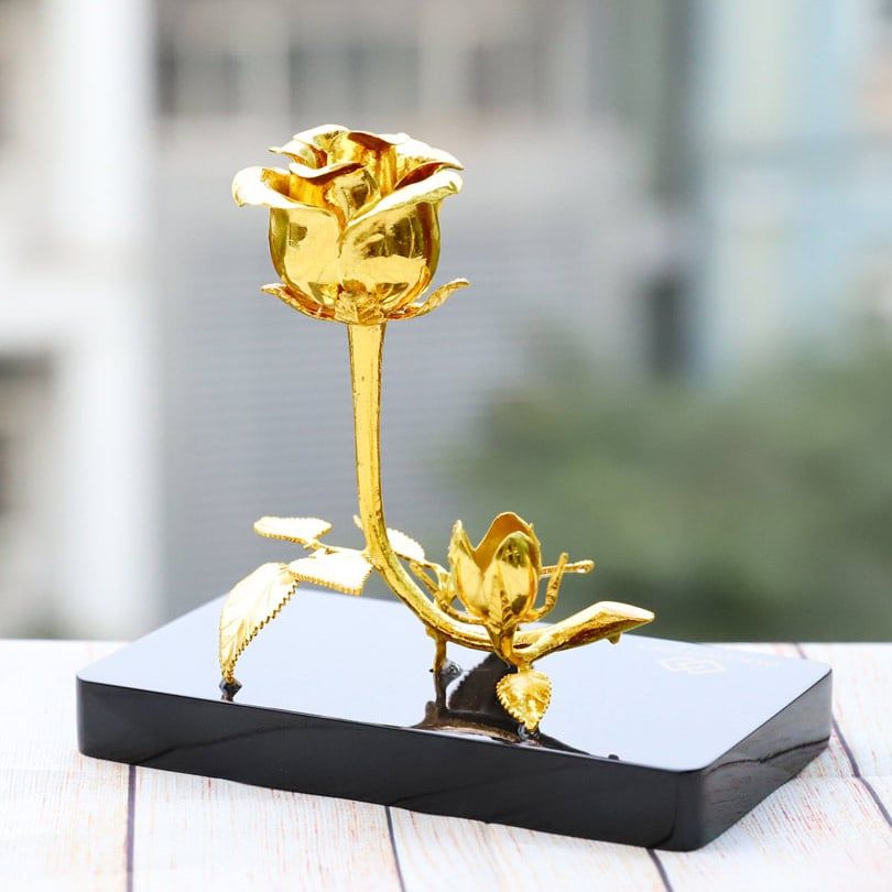 - Sự vĩnh cửu: Lớp vàng ròng bao phủ giúp đóa hoa giữ mãi vẻ đẹp rực rỡ theo thời gian, tượng trưng cho sự bền vững của sự nghiệp và tình cảm.