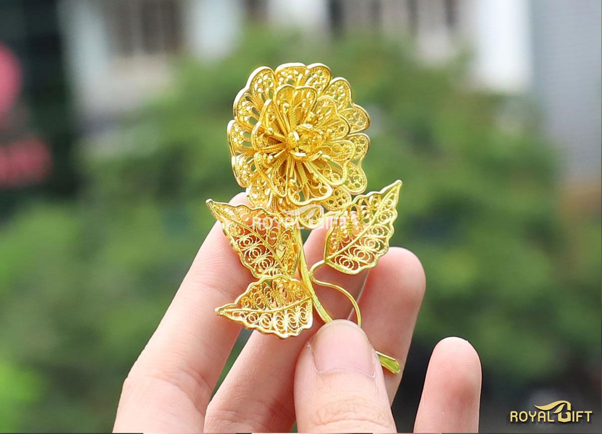 Hoa cài áo do Royal Gift chế tác được mạ vàng thật bằng phương pháp điện phân