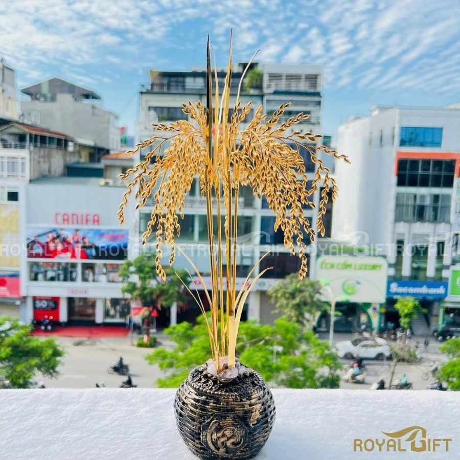 Hũ Lúa Tài Lộc Mạ Vàng do Royal Gift chế tác là một vật phẩm phong thuỷ độc đáo, vừa mang hơi thở truyền thống, vừa giúp mang đến nguồn năng lượng tốt lành cho không gian trưng bày, đem may mắn và sung túc đến cho gia chủ.