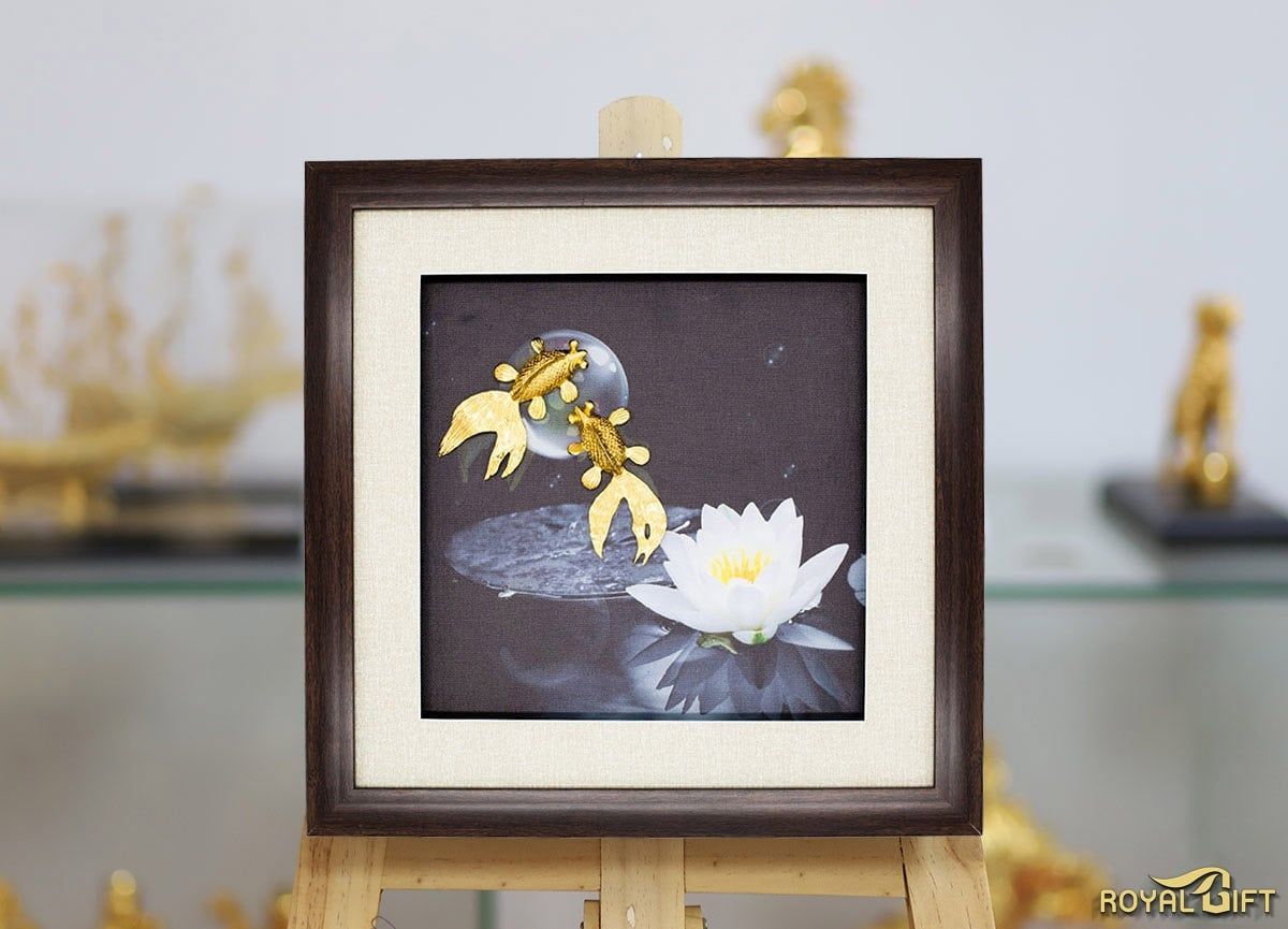 Tranh cá chép hoa sen mạ vàng 24K của Royal Gift là kiệt tác nghệ thuật phong thủy, chế tác thủ công tinh xảo, biểu trưng cho sự dư dả, kiên trì (cá chép) và thanh cao (hoa sen). Bức tranh thu hút tài lộc, may mắn, thăng tiến sự nghiệp, là quà tặng tân gia, đối tác đẳng cấp, sang trọng.