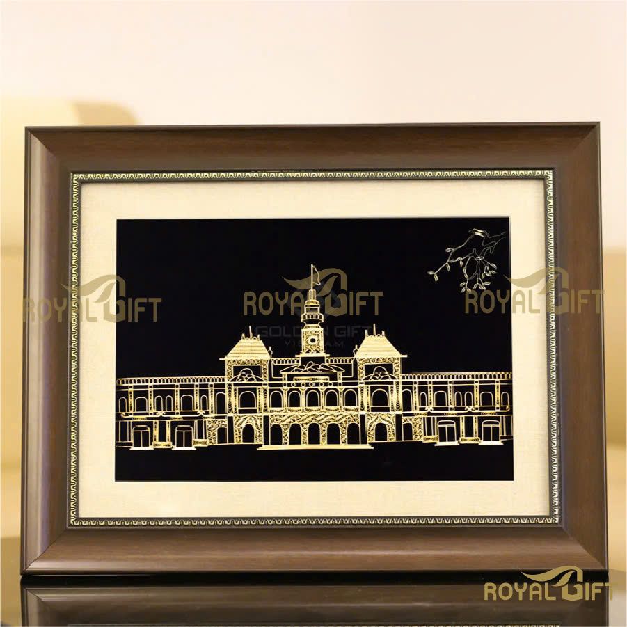 Tranh tòa nhà UBND TP.HCM mạ vàng 24K
