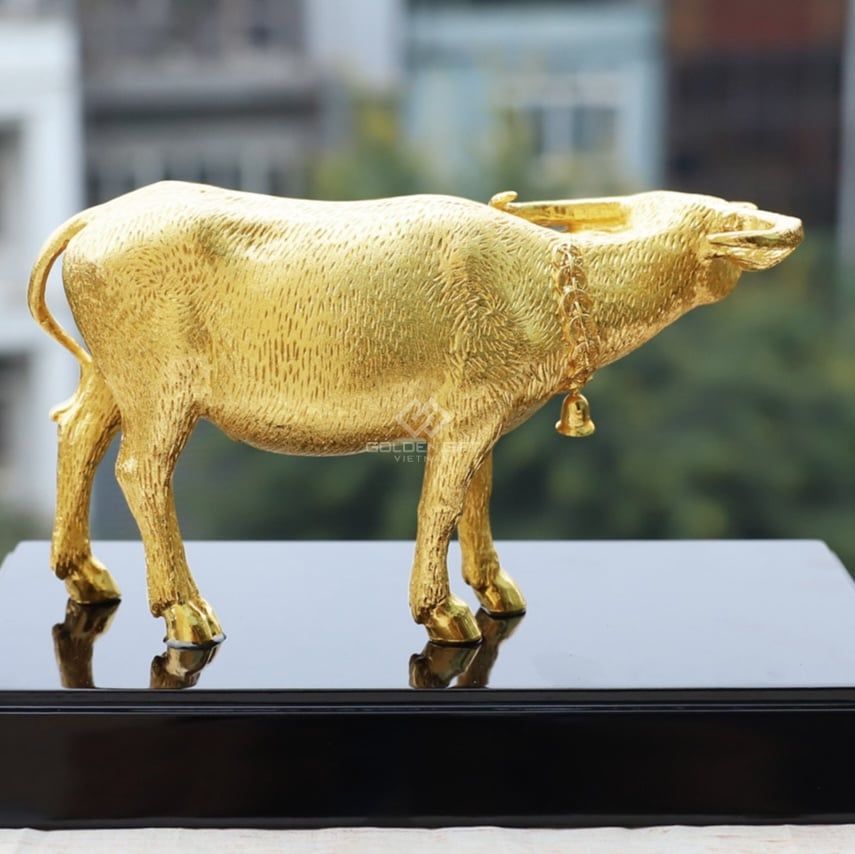 - Chiêu tài dẫn lộc: Trâu thuộc hành Thổ, trong phong thủy, đây là hành mang lại sự ổn định và tích lũy tài sản. Trâu vàng đặt bàn làm việc giúp chủ nhân thu hút vượng khí, kinh doanh thuận lợi.